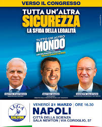 Oggi pomeriggio a Citta’ della Scirnza, a Bagnoli e’ previstob un incontro della Lega “Tutta un’ altta sicurezza, la sfida drlla legalita’ con interventi di Matteo Piantedosi, Giuseppe Valditara con conclusuoni affidate a Matteo Salvini
