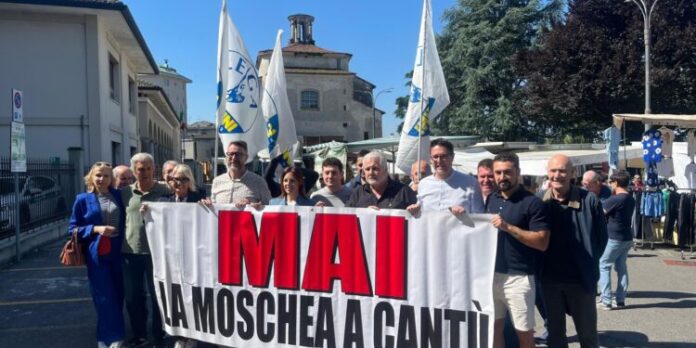 Gazebo della Lega a Cantù per ribadire la contrarietà alla moschea di via Milano e avviare una raccolta firme. Una mobilitazione indetta dopo che il Consiglio di Stato, respingendo i ricorsi del Comune, ha di fatto ribadito, come già fatto dal Tar il via libera al luogo di culto islamico nel capannone dell’Associazione Assalam.