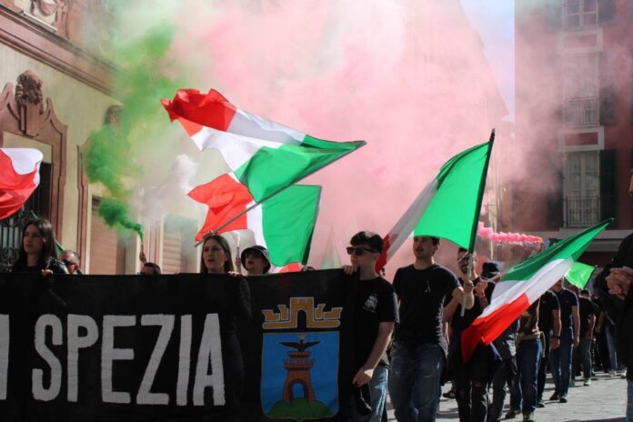 “Oltre 1000 persone hanno sfilato nelle strade di La Spezia con striscioni e tricolori per ribadire la necessità di un’Europa Potenza e di un programma di remigrazione”.