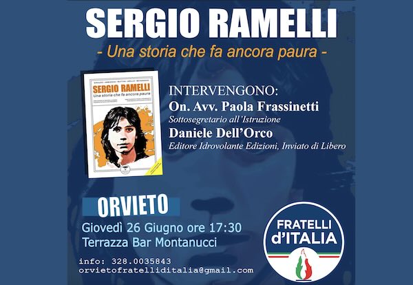 Si è svolto ieri a Orvieto l’incontro “Sergio Ramelli, una storia che fa ancora paura”, organizzato dal circolo di Fratelli d’Italia Orvieto, dedicato al ricordo e alla riflessione sulla figura di Sergio Ramelli, il giovane militante del Fronte della Gioventù, organizzazione giovanile del Movimento Sociale Italiano, ucciso brutalmente a Milano nel 1975, colpevole solo di aver espresso, in un suo tema, una critica all’agire violento delle Brigate Rosse. A cinquant’anni da quel tragico evento, la comunità di Fratelli d’Italia Orvieto ha voluto ribadire che la memoria di chi ha pagato con la vita l’intolleranza ideologica è un dovere, per continuare a difendere i valori di democrazia e libertà in cui crediamo.