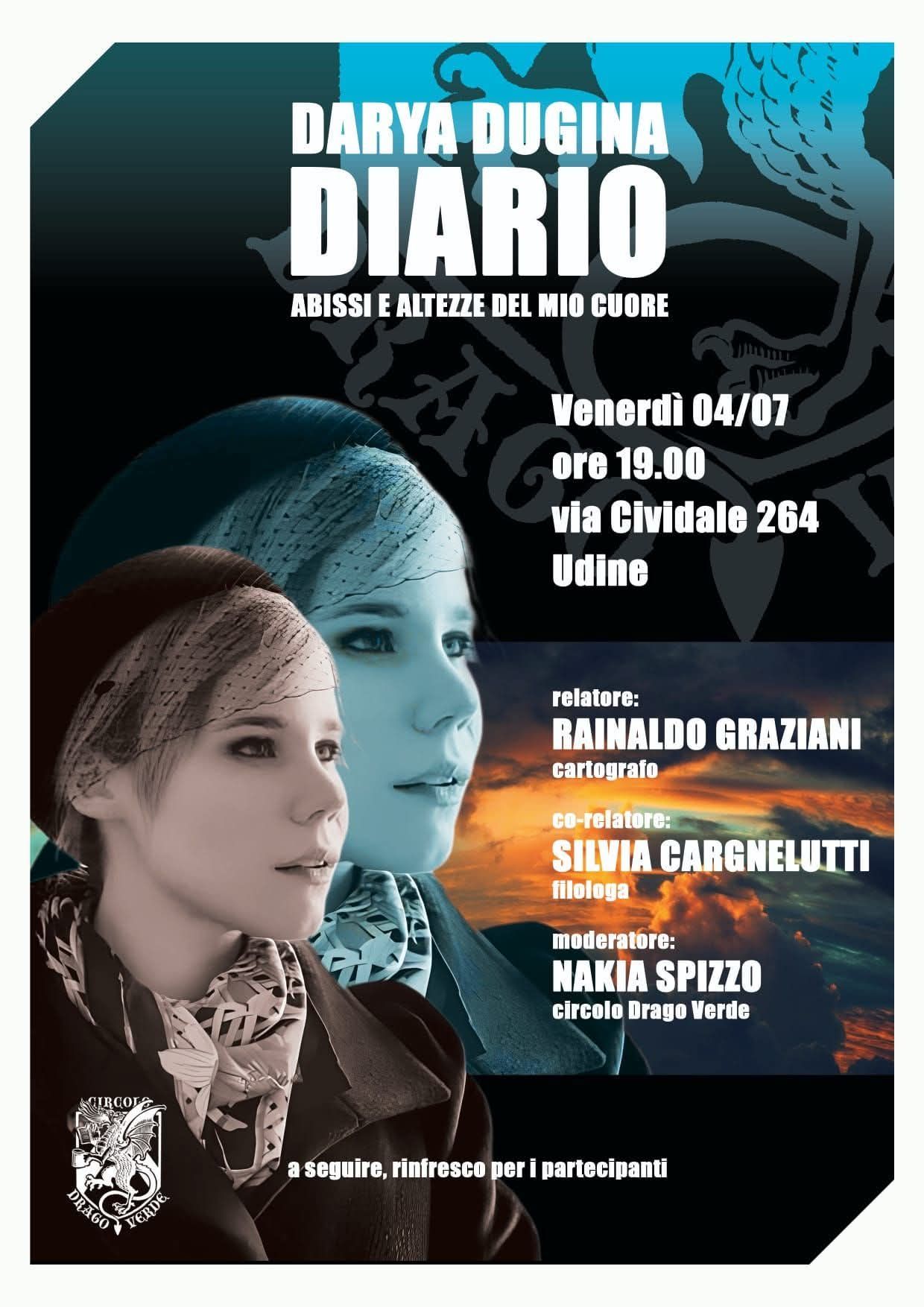 Continua, in questa torrida estate italiana, il tour di presentazione di Dario, abissi e altezze del mio cuore, il libro di Darya Dugina.