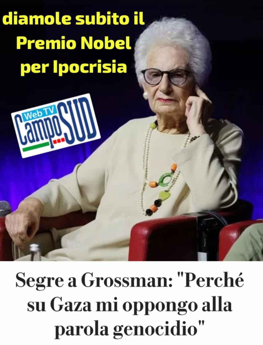 Una posizione che fa discutere, soprattutto perché a esprimerla è Liliana Segre, testimone della Shoah e simbolo della memoria storica. In una recente intervista con Grossman, la senatrice a vita ha spiegato di “non potersi accostare alla parola genocidio”, nonostante la brutalità delle immagini e dei numeri.