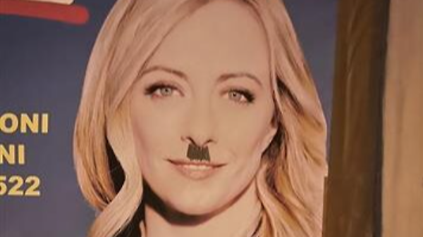Meloni con baffetti da Hitler, manifesti di Fratelli d’ Italia deturpati nel senese