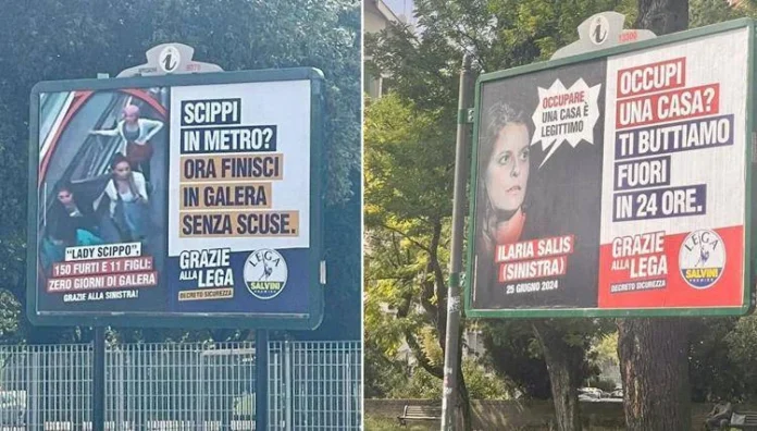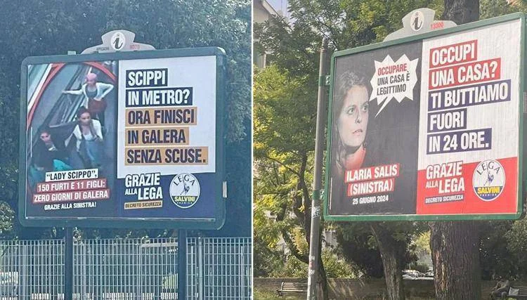 E’ ripartita, in grande stile, la campagna della Lega a sostegno del decreto sicurezza, “dopo la censura decisa arbitrariamente dal Comune di Roma poche settimane fa. Dato che il Campidoglio contestava la presenza di immagini generate con l’intelligenza artificiale, i nuovi manifesti diffusi nella capitale utilizzano immagini vere. In una c’è la parlamentare Ilaria Salis, nell’altra appare “lady scippo” una borseggiatrice seriale di origini croate di cui hanno parlato i media”, spiega una nota della Lega.