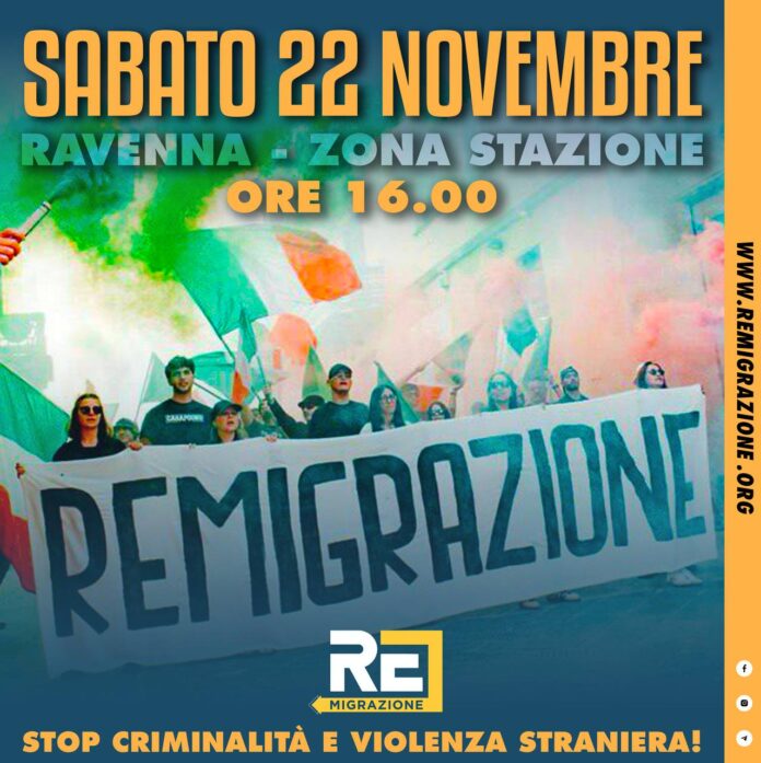 Ad una settimana dalla presentazione a Brescia, il Comitato Remigrazione e Riconquista – nato dalla collaborazione di diversi movimenti identitari con l’intento di promuovere la Remigrazione e riportare l’Italia e gli italiani al centro delle politiche di natalità e welfare attraverso una proposta di legge di iniziativa popolare – scenderà in piazza a Ravenna, sabato 22 novembre.