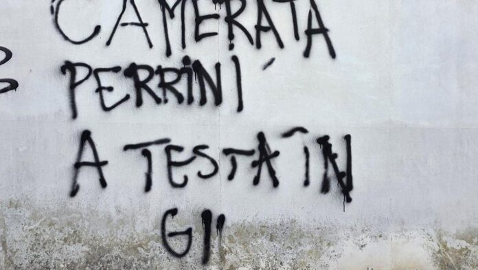 “Perrini camerata a testa in giu'” è il testo di una scritta offensiva comparsa sui muri a Crispiano, in provincia di Taranto contro il consigliere regionale e capogruppo di Fratelli d’Italia,
