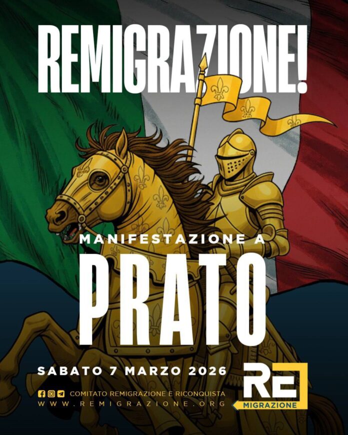 Il comitato Remigrazione e Riconquista prosegue la sua marcia in tutta Italia e, dopo l’annuncio del corteo a Bolzano di questo sabato, conferma una nuova manifestazione di carattere nazionale anche a Prato, in Toscana, sabato 7 marzo.