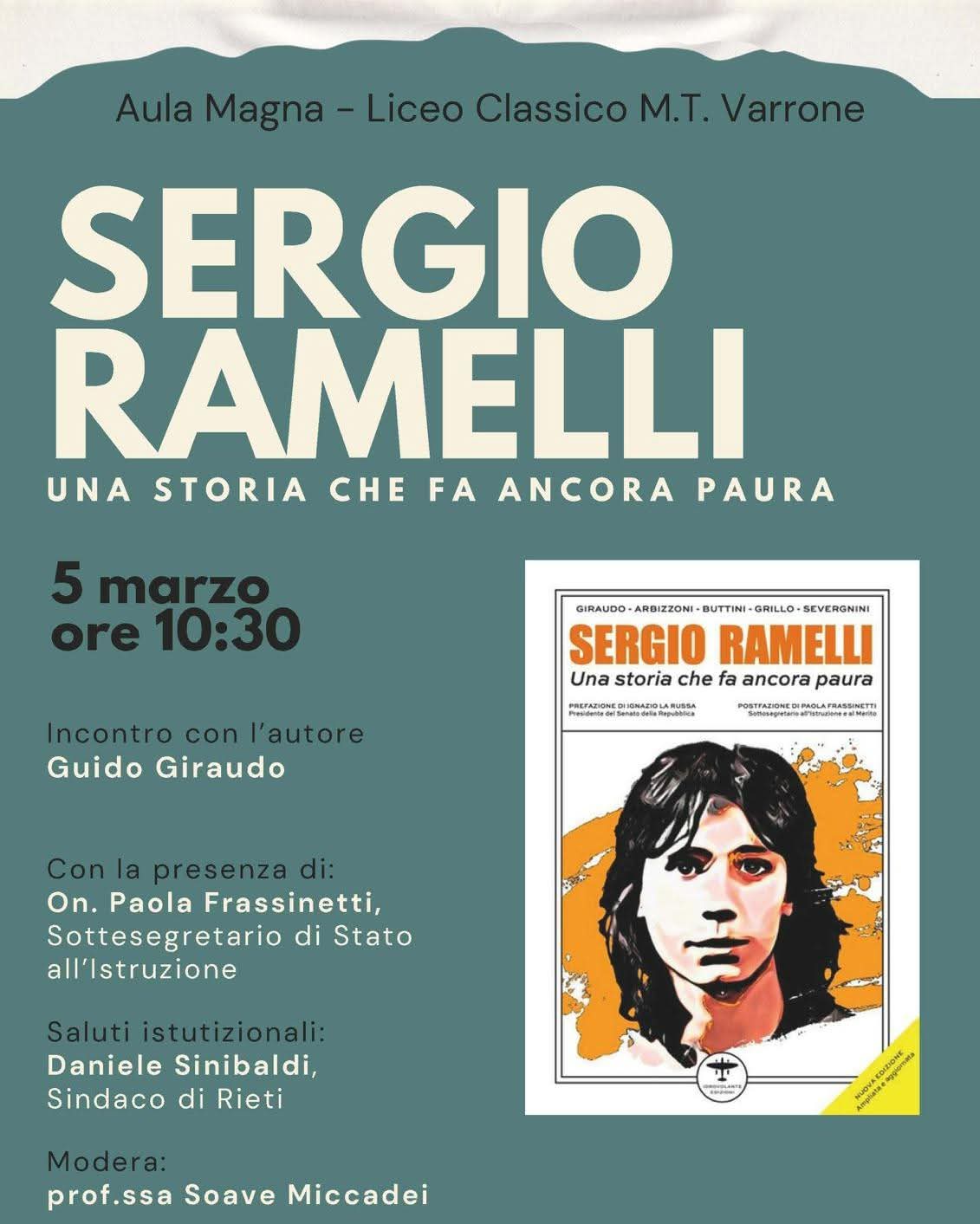 Giovedì 5 marzo presso l’aula magna del liceo classico M T Varrone a Rieti verrà presentato il libro Sergio Ramelli, una storia che fa ancora paura pubblicato da Idrovolante edizioni.