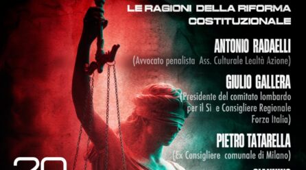 Separazione delle carriere, sorteggio per l’elezione dei membri togati del CSM e istituzione dell’Alta Corte disciplinare: perché l’Italia ha bisogno di una Giustizia Giusta. Questo è il tema di un incontro promosso dal movimento Lealtà e Azione per venerdì 20 marzo a Bollate presso la sede dell’ associazione Lealtà e Azione. Interverranno l’Avvocato Antonio Radaelli (penalista e responsabile del Dipartimento Studi Giuridici dell’ Ass. Culturale Lealtà Azione), Giulio Gallera (Avvocato, Consigliere Regionale di Forza Italia e Presidente del Comitato Lombardo per il Sì), Pietro Tatarella (ex consigliere comunale di Milano) e Giannino Della Frattina (giornalista de Il Giornale, storica testata fondata da Indro Montanelli e da sempre in prima linea per la battaglia sulla riforma della Giustizia).