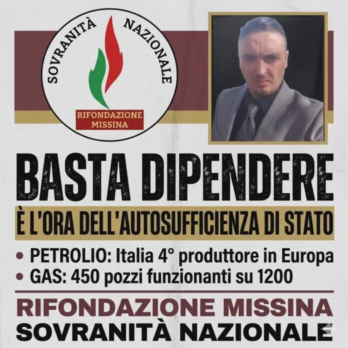 Sulla crisi energetica, sul caro benzina, riceviamo una nota, diffusa alla stampa da Rifondazione Missina, raggruppamento nato da una scissione interna alla Fiamma Tricolore a firma del segretario Fabio Simeone nel quale si rilancia l’idea forza dell’ autosufficienza energetica per il nostro paese.