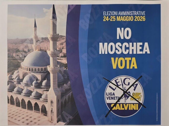 “No moschea”: questo è lo slogan di un manifesto elettorale della Lega affisso a Venezia in vista delle elezioni amministrative in programma il 24 e 25 maggio 2026. La campagna del partito di Matteo Salvini, che sostiene la candidatura alla poltrona di sindaco di Simone Venturini, è entrata nel vivo nella notte con l’affissione di questi manifesti tra la città storica e Mestre contro la costruzione del luogo di culto nell’edificio dell’ex segheria Rosso in via Giustizia.A spiegare il pensiero e la linea politica della Lega è Sergio Vallotto, vicesindaco di Venezia e segretario provinciale del partito: “La nostra non è una battaglia contro l’Islam o la comunità bengalese – ha spiegato – bensì una doverosa richiesta di rispetto delle leggi e della Costituzione italiana.