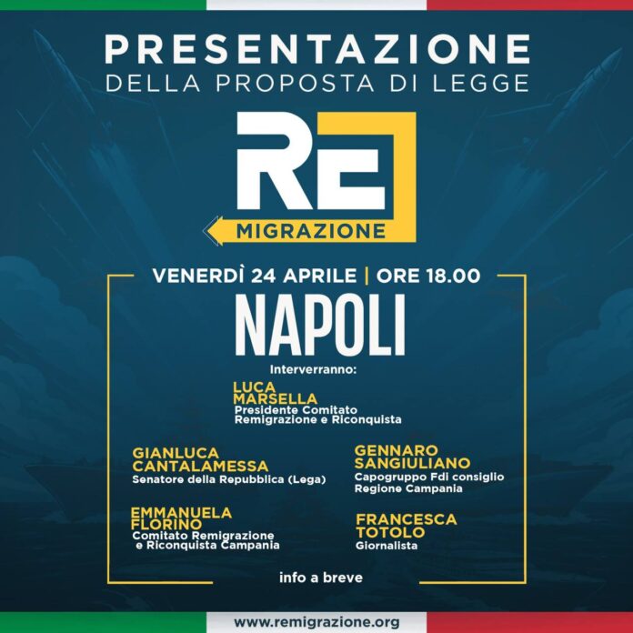 Nella giornata di venerdì 24 aprile, alle ore 18, si terrà la presentazione della proposta di legge di iniziativa popolare sulla remigrazione, che ha già raccolto quasi 150.000 firme, il triplo di quelle necessarie.