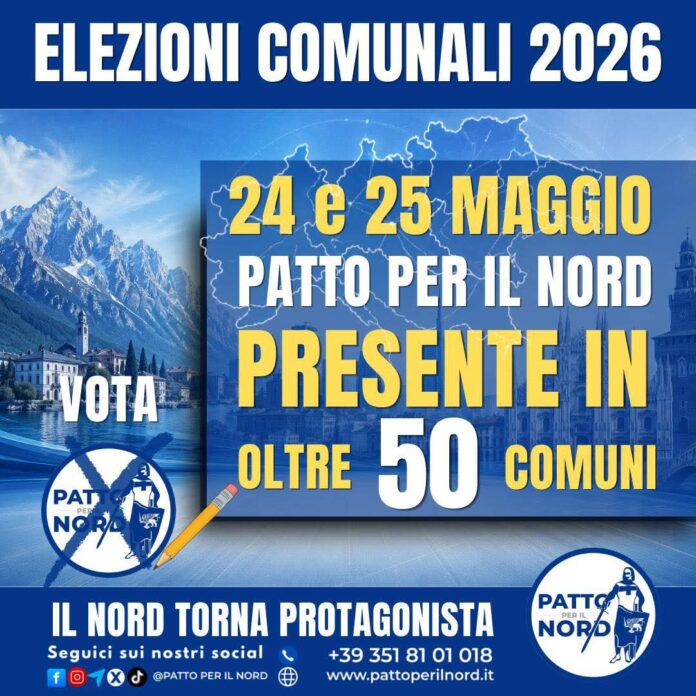 Lo dichiara sui suoi canali social Paolo Grimoldi, segretario federale del Patto per il Nord precisando: “dai capoluoghi e dalle città più rilevanti come Lecco, Mantova, Legnano, Voghera, Venezia e Comacchio, fino a realtà come Quinzano, Sorisole, Turate, Bollate, Mortara e Vigevano. Un risultato che va oltre ogni più rosea previsione e che racconta una verità chiara: il Nord si sta rialzando e vuole tornare protagonista nella politica nazionale”
